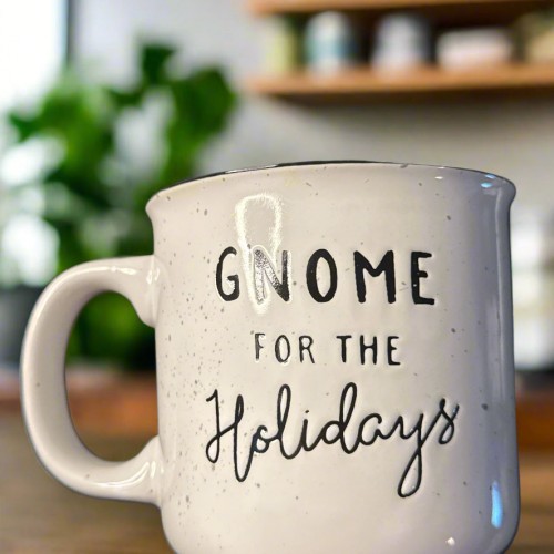 Gnome For The Holidays Coffee Mug Cup Eccolo World Traveler 4″ Tall White w/ Black Trim 24oz
