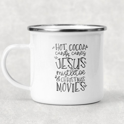 Hot Cocoa Candy Canes Jesus Mistletoe & Christmas Movies Mug
