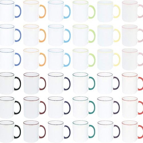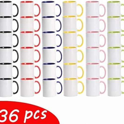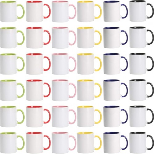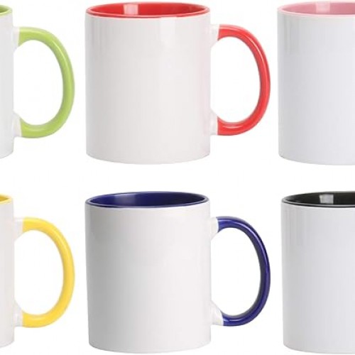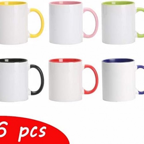 11oz White Ceramic Sublimation Coffee Mug With Solid Colors Inside and Handle, (6, Black)