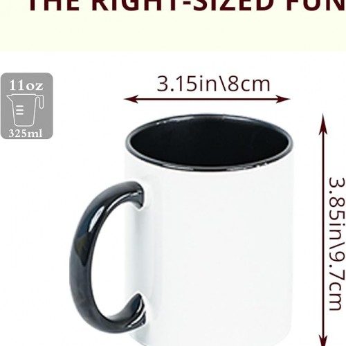 11oz White Ceramic Sublimation Coffee Mug With Solid Colors Inside and Handle, (108, Black)