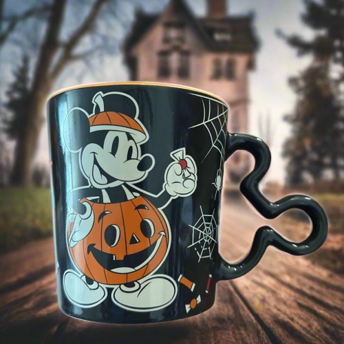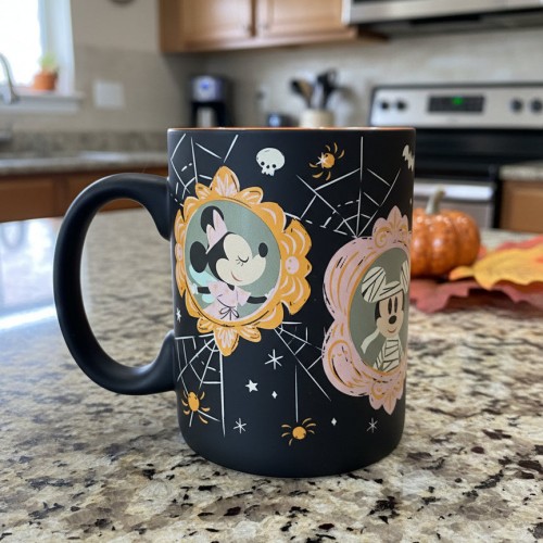 Disney Zrike Halloween Mickey & Friends Ceramic Soft Feel Black Coffee Mug Cup New 4 7/8″