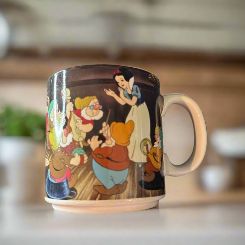 Disney Snow White & Seven Dwarfs Coffee Cup Mug 12oz Vintage 1990’s Made in Japan 3 5/8″
