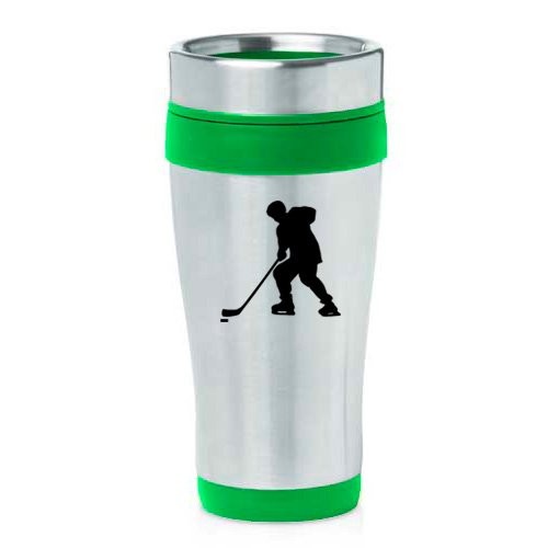 16oz Insulated Stainless Steel Travel Mug Hockey Player (Green ),MIP