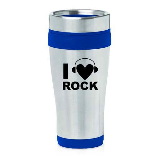 16oz Insulated Stainless Steel Travel Mug I Heart Love Rock Music Headphones (Blue),MIP