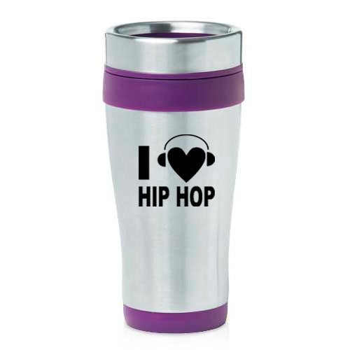 16oz Insulated Stainless Steel Travel Mug I Heart Love Hip Hop Music Headphones (Purple),MIP