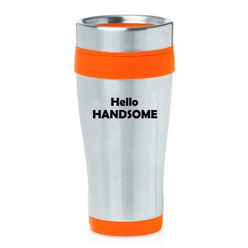 16oz Insulated Stainless Steel Travel Mug Hello Handsome (Orange),MIP