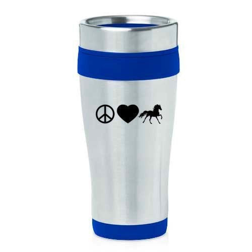 16oz Insulated Stainless Steel Travel Mug Peace Love Horse (Blue),MIP