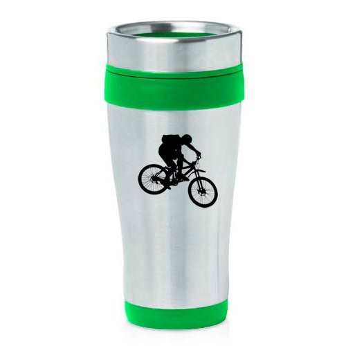 16oz Insulated Stainless Steel Travel Mug Mountain Biker Bike (Green ),MIP