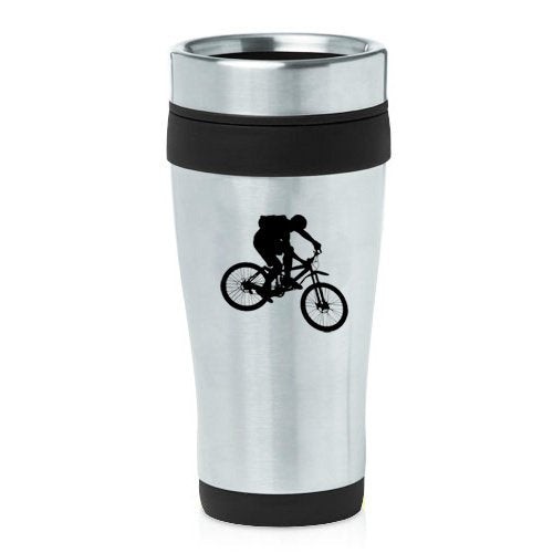 16oz Insulated Stainless Steel Travel Mug Mountain Biker Bike (Black ),MIP