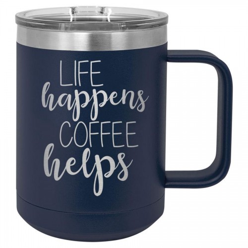 Life Happens Coffee Helps 15 oz Polar Camel Coffee Mug with Sliding Lid