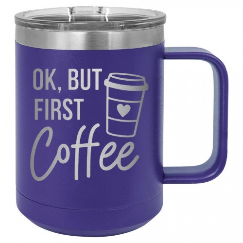 Ok But First Coffee 15 oz Polar Camel Coffee Mug with Sliding Lid