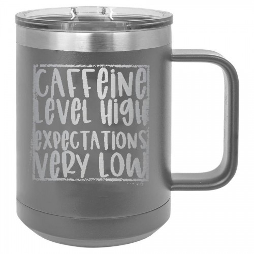 Caffeine Level High Expectations Very Low 15 oz Polar Camel Coffee Mug with Sliding Lid