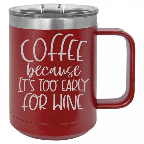 Coffee Because It’s Too Early for Wine 15 oz Polar Camel Coffee Mug with Sliding Lid