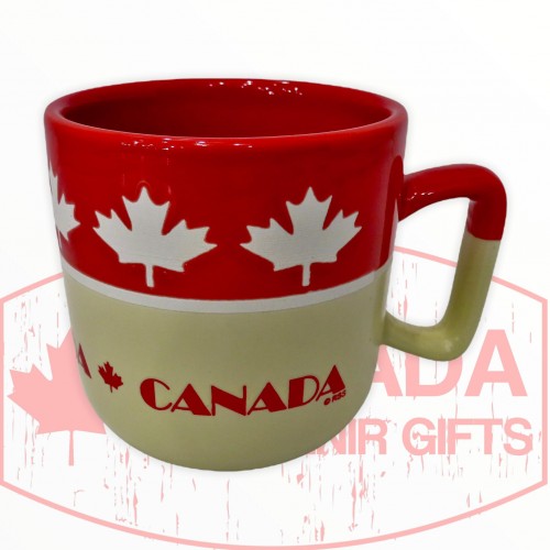 14 oz Large Mug Ceramic Coffee Tea Glass Cup Maple Leaf Canada (Red & Cream)