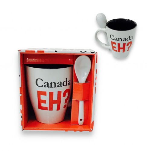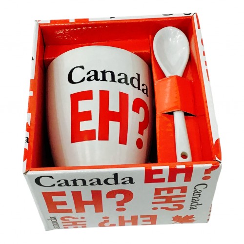 MUG CANADA EH – WHITE COFFEE MUG W/ SPOON TEA CUP WITH BOX 11 oz