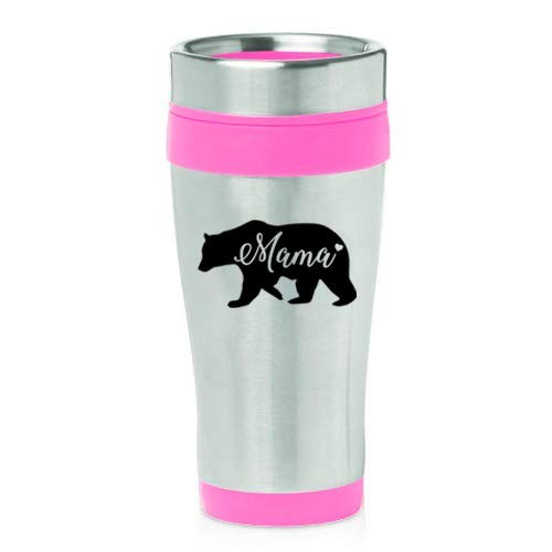16 oz Insulated Stainless Steel Travel Mug Mama Bear Mom Mother (Pink)