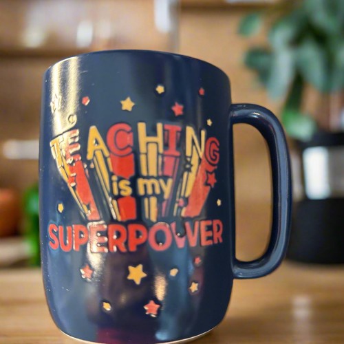 Market Finds “Teaching is My SuperPower” Blue Coffee Cup Mug 4.5″ Tall New