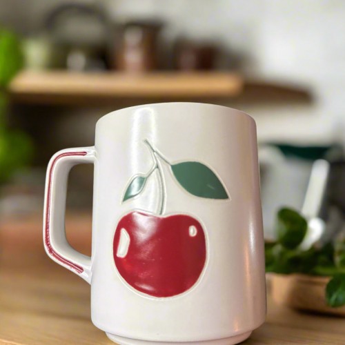 Market Finds Cherry White Coffee Cup Mug 4 3/8″ Tall New