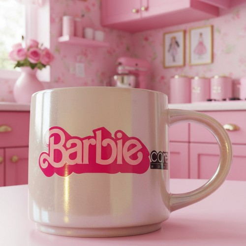 BARBIE (The Movie) 2023 Pink Coffee Cup Mug – Iridescent Pearl Stoneware 15oz 3 5/8″ Tall