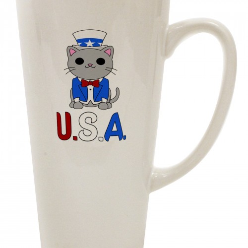USA Patriotic Cat 16 Ounce Conical Latte Coffee Mug – Expertly Crafted Drinkware by TooLoud White