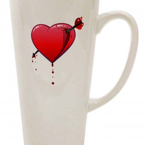 Get your hands on the Shot Through the Heart Cute 16 Ounce Conical Latte Coffee Mug by TooLoud and express your love in style. This unique and copyrighted design, created by the renowned TooLoud brand, is printed in the USA with utmost pride. The print on the mug may slightly differ in size, color, and location from the picture shown, adding an element of exclusivity to your purchase.
