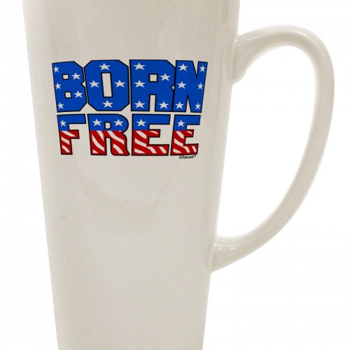Born Free 16 Ounce Conical Latte Coffee Mug by TooLoud. Show your patriotic spirit with this red, white, and blue print.