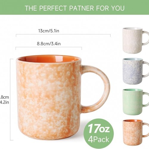 - 【LARGE SIZE & CONVENIENT SET】: With a capacity of 12 OZ, these mugs are the perfect size for everyday use at home or in the office. The set of 4 mugs is convenient for serving guests or for use throughout the day. These mugs are versatile and can be used for a variety of beverages such as coffee, tea, soup, milk, latte, cappuccinos, hot chocolate, cocoa, and more.