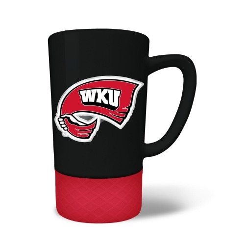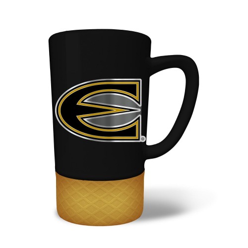 The 18 oz. JUMP team color ceramic coffee mug features a silicone base in coordinating team color and a hand crafted metal emblem.