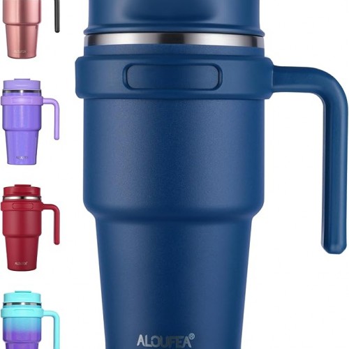 - 20 OZ COFFEE MUG TUMBLER: The water tumbler with handle is made from 18/8 food-grade stainless steel, it is durable, easy to wash, unbreakable, compact and portable. With a unique 2-in-1 sip and straw lid, a lid for every drinking need