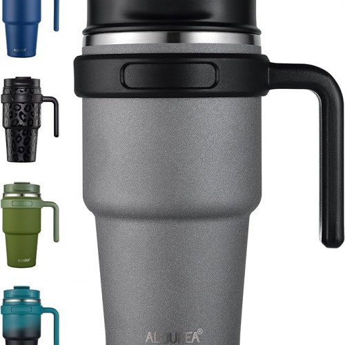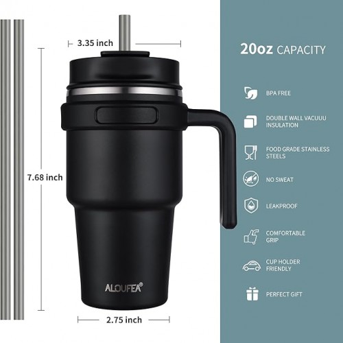 - 20 OZ COFFEE MUG TUMBLER: The water tumbler with handle is made from 18/8 food-grade stainless steel, it is durable, easy to wash, unbreakable, compact and portable. With a unique 2-in-1 sip and straw lid, a lid for every drinking need