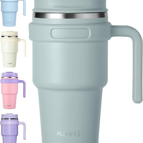 - 20 OZ COFFEE MUG TUMBLER: The water tumbler with handle is made from 18/8 food-grade stainless steel, it is durable, easy to wash, unbreakable, compact and portable. With a unique 2-in-1 sip and straw lid, a lid for every drinking need