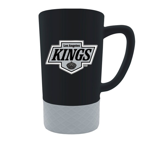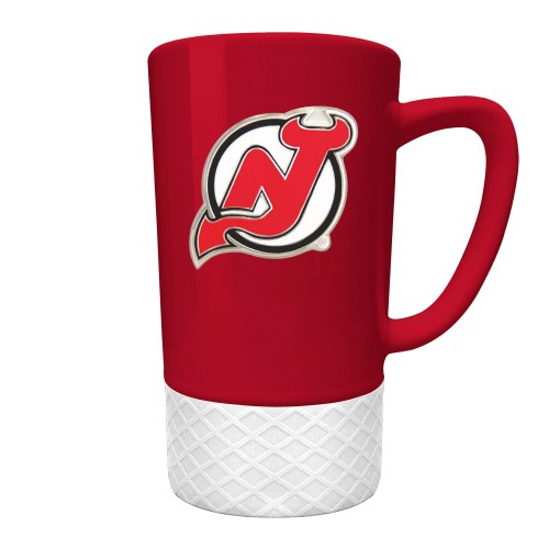 The 18 oz. JUMP team color ceramic coffee mug features a silicone base in coordinating team color and a hand crafted metal emblem.