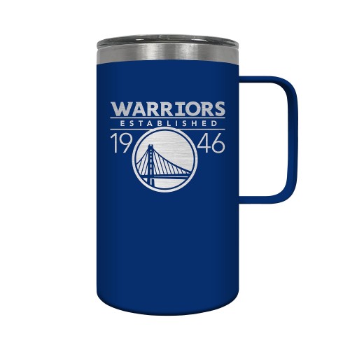 The Hustle is a 18oz vacuum insulated travel mug with large handle. Includes spill resistant lid and features laser etched team graphics.
