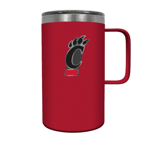 The Hustle is a 18oz vacuum insulated travel mug with large handle. Includes spill resistant lid and features a 3-dimensional handcrafted emblem.