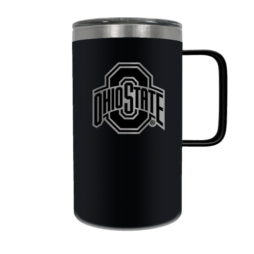 The Hustle is a 18oz vacuum insulated travel mug with large handle. Includes spill resistant lid and features a 3-dimensional handcrafted emblem.