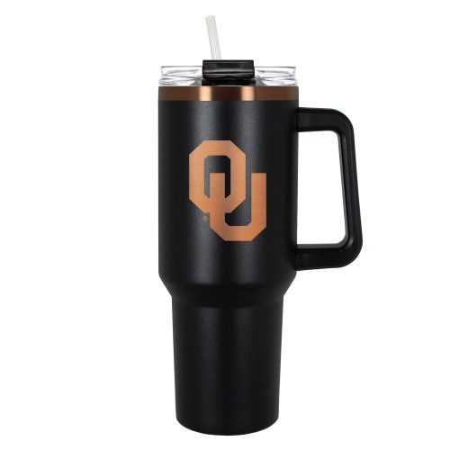 This 40 oz. COLOSSUS travel mug is made of high quality vacuum insulated stainless steel. It features premium copper undertones with durable powder coated black outer finish and laser etched team graphics.