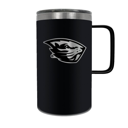 The Hustle is a 18oz vacuum insulated travel mug with large handle. Includes spill resistant lid and features a 3-dimensional handcrafted emblem.