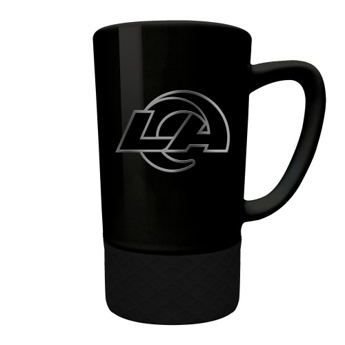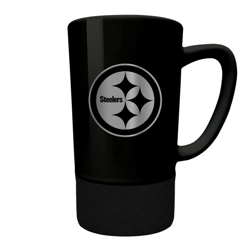The 18 oz. STEALTH JUMP ceramic coffee mug features a black silicone base and a hand crafted metal team emblem.