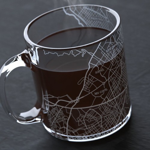Barcelona Street Maps Glass Coffee Mug Barcelona Coffee Mug