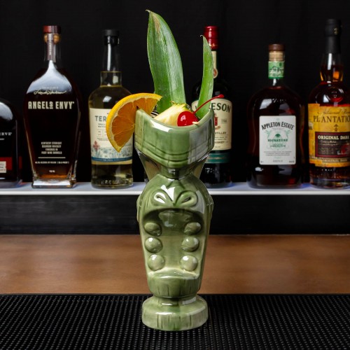 Our clear 15 ounce BarConic® Tiki Glass is such a hit that we just had to expand our line! This teal tinted Tiki glass is our exciting addition! The high quality glass material, smooth intricate lines and blue tint defines this tiki themed glass beautifully. The blue gradient effect starts off with a dark blue at the base and then lightens to a crystal teal. Perfect for tropical cocktails in any bar setting.
