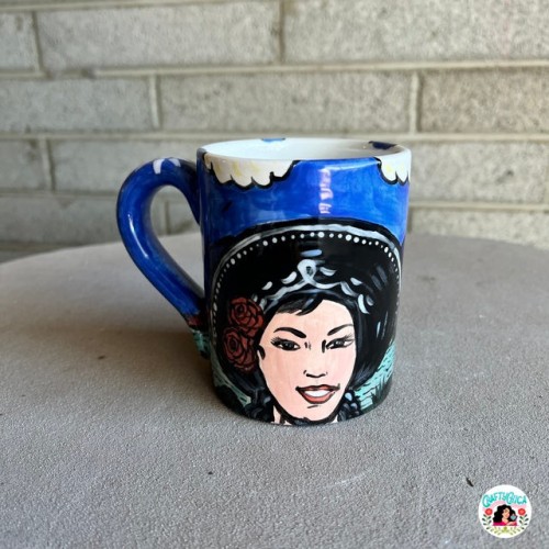 This mug is hand painted by me (Kathy, The Crafty Chica), and it is painted inside and out.