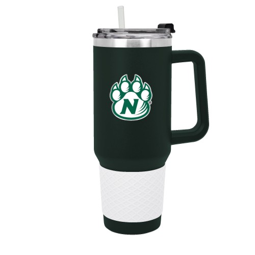 The 40 oz. COLOSSUS travel mug is made of high quality vacuum insulated stainless steel and comes in team colors with a coordinating color silicone grip. It features a high quality hand crafted officially licensed metal team logo. Includes a push down lid and clear drinking straw.