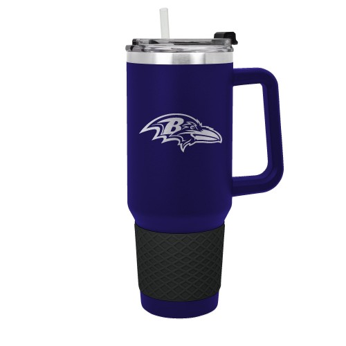 The 40 oz. COLOSSUS travel mug is made of high quality vacuum insulated stainless steel and comes in team colors with a coordinating color silicone grip. It features a high quality laser etched officially licensed team logo. Includes a push down lid and clear drinking straw.