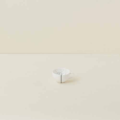 The Dibbern Black Forest pattern features a single bare tree in a black silhouette. Both graphic and natural, it offers a sophisticated touch to any modern interior.