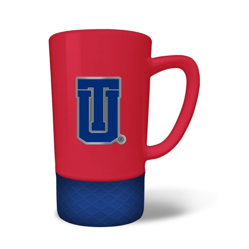 The 18 oz. JUMP team color ceramic coffee mug features a silicone base in coordinating team color and a hand crafted metal emblem.