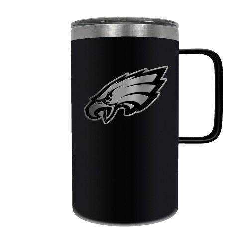 The Hustle is a 18oz vacuum insulated travel mug with large handle. Includes spill resistant lid and features a 3-dimensional handcrafted emblem.