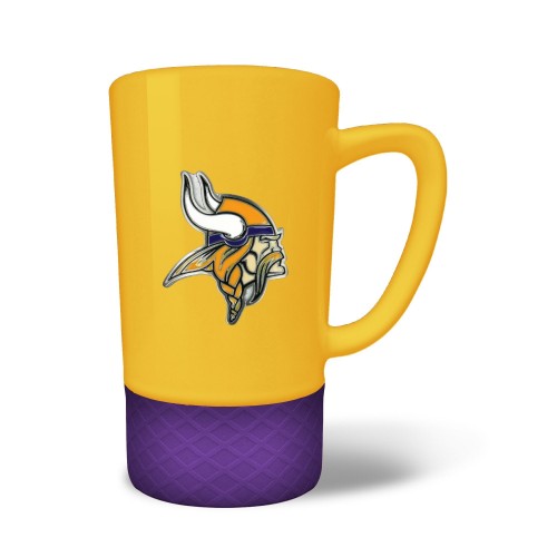 The 18 oz. JUMP team color ceramic coffee mug features a silicone base in coordinating team color and a hand crafted metal emblem.
