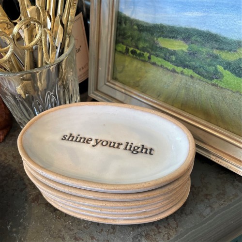 What a sweet wee catch all dish, the butter image is super fun. This little trinket dish is roughly 3″ and hand shaped. Coated in a food-safe sealant perfect for salt, olive pits, vitamins, jewelry, tiny sundry items, or as a stand-alone pretty. Hand rinse only, no dishwashers please.