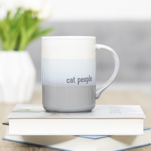 - IN-HOUSE DESIGN: The coffee cup features a triple-tone white, light gray & dark gray striped reactive glaze pattern accompanied by a “Cat People” gray sentiment in the front center towards the handle. Additionally, a unique gray silhouette pawprint at the bottom interior of the mug is revealed as you drink your favorite coffee, tea, or other beverage.