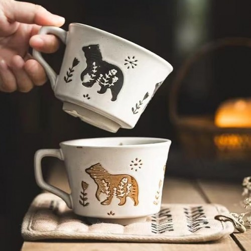 Ceramic Coffee Mug, 12 oz Mug Black Bear Set of 1, Novelty Cup with Handle, Stoneware Fun Cup for Coffee Milk Tea Mocha Latte Cappuccino Espresso Adorable Bear, Microwave Dishwasher Safe